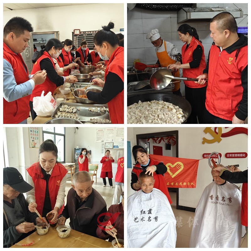 活动现场洋溢着温馨的氛围。厨房里热气腾腾,志愿者们手法娴熟地包着象征团圆的饺子,一个个饱满的饺子整齐排列,传递着浓浓的关怀。与此同时,其他志愿者也在活动室内为老人们提供理发、修剪指甲、测量血压等服务。一份份新鲜水果和保暖鞋相继送到老人手中,现场笑语不断,情意融融。