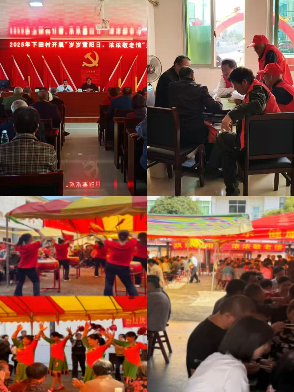 各村(社区)结合自身实际,开展了各具特色的敬老活动:南水村发动村支两委发动捐款帮扶困难老人;盘联村搭台献戏弘扬戏曲文化;下田村与枧头村将反诈宣传融入节日活动,提升老人防骗意识;中江村举办集体聚餐活动,营造团圆温馨的节日氛围。各项活动注重实效与安全,深受群众欢迎。