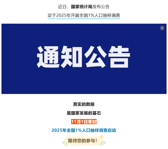 百里挑一,感谢有你!请支持2025年全国1%人口抽样调查!