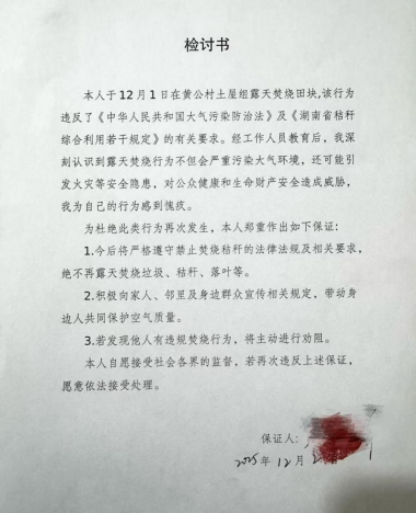 为有效防治大气污染,今年10月份以来,宁家坪镇依法对3起露天焚烧秸秆行为作出行政处罚,对当事人各处500元罚款,并责令其现场书写检讨书。此举标志着宁家坪镇在攸县率先建立起“处罚与教育相结合”的秸秆焚烧治理模式,相关做法已被列为典型经验在全县推广。