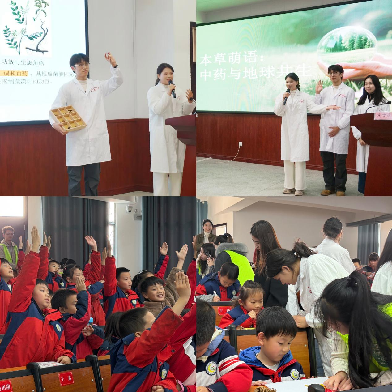 湖南中医药大学中西医结合学院第五学生党支部师生团队以“本草智慧与生态家园”为主题,精心打造“五维生态课堂”,通过“地球小药箱”实物认知、“生态小游戏”互动问答、“草木有情”故事分享、“危机小剧场”角色扮演、“守护大作战”实践承诺等创新环节,将“天人合一”的传统生态智慧转化为可感可知的教学体验。孩子们在互动中不仅认识了本地常见药用植物,更深刻理解了生物多样性保护与家乡发展的共生关系,在心灵深处种下了敬畏自然、守护生态的绿色种子,为生态文明教育提供了“专业赋能+趣味实践”的创新范式。