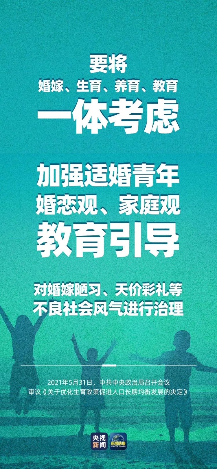 中共中央政治局5月31日召开会议,听取“十四五”时期积极应对人口老龄化重大政策举措汇报,审议《关于优化生育政策促进人口长期均衡发展的决定》。就积极应对人口老龄化、调整生育政策等问题,会议作出重磅部署。