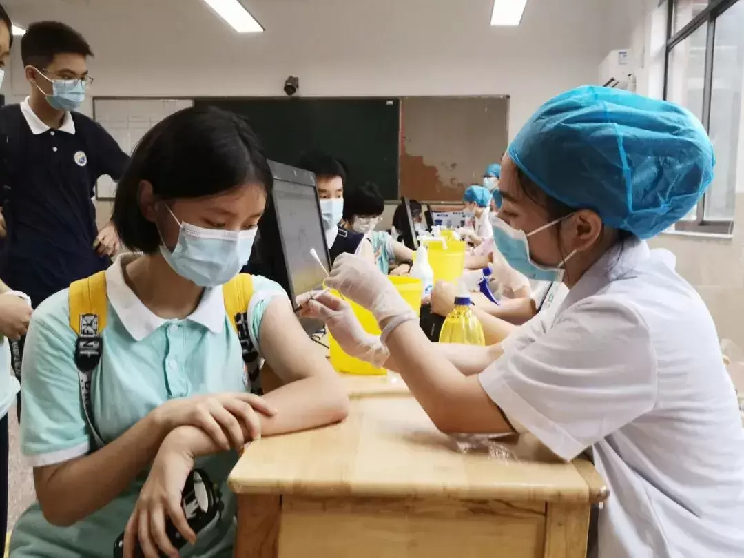 ▲8月13日,岳麓区12至14岁学生接种新冠疫苗“第一针”。