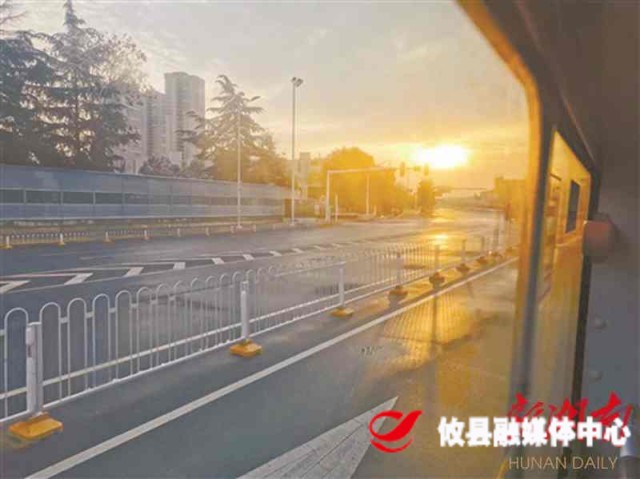 (上图:武汉,晚班途中的向林军在大巴上用手机拍下了这张温暖美丽的夕阳图。 通讯员 摄)