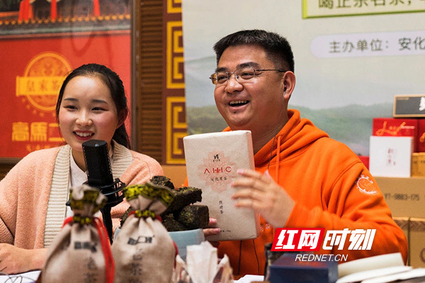 陈灿平卖的是安化县盛产的黑茶。安化位于湖南省中部,一直是贫困县,直到2019年4月才脱贫摘帽。安化有110万人,其中36万是茶农,去年差不多有十万人靠卖茶叶脱贫。