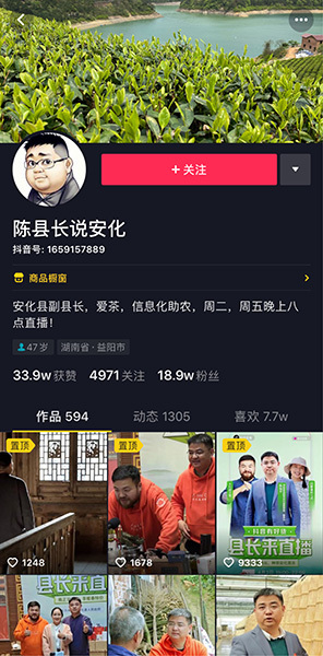 陈灿平的抖音账号是“陈县长说安化”,2018年10月22日,陈灿平发了他人生第一条抖音。