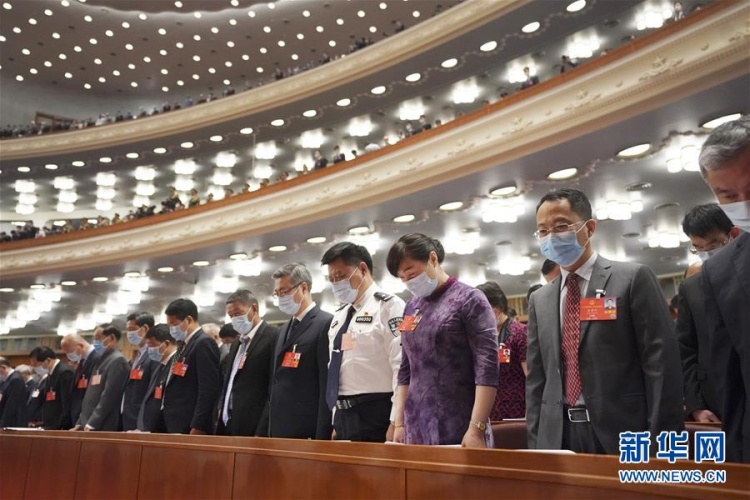 5月22日,第十三届全国人民代表大会第三次会议在北京人民大会堂开幕。全体与会人员向新冠肺炎疫情牺牲烈士和逝世同胞默哀。新华社记者 王毓国 摄