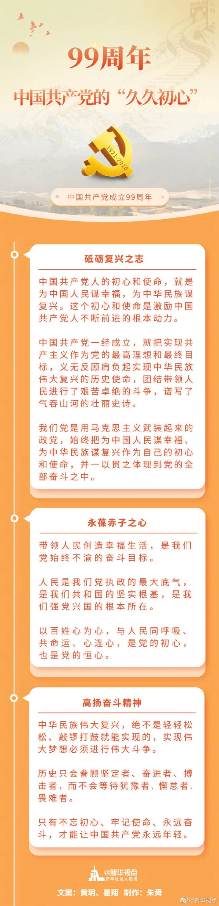 砥砺前行99年,一部中国共产党的发展史,就是一部一切依靠人民、一切为了人民的奋斗史。中国共产党不断壮大,根本原因就在于始终坚守为中国人民谋幸福、为中华民族谋复兴的初心使命,始终保持与人民风雨同舟、生死与共的血肉联系。