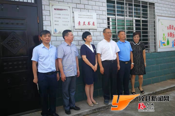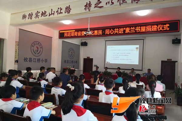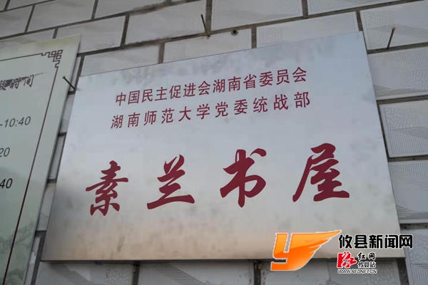 在江桥小学,民进湖南省委主委潘碧灵,民进省委副主委、著名儿童文学作家、湖南师大文学院教授汤素兰,共同为“素兰书屋”揭牌,并参观了“素兰书屋”。