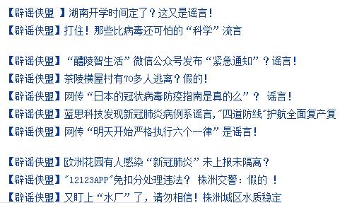 今年疫情期间,我市出现“株洲因新型肺炎疫情死亡6人”“株洲北收费站封闭”“去芦淞大市场采购年货被传染新型肺炎”“传430有疫情大爆发”等网络谣言30余条。我市及时发现并处置,市新媒体发布“辟谣侠盟”系列文章30多篇澄清各类谣言,网信部门联合公安部门依法惩治造谣者7人。一系列得力举措,有效控制了谣言蔓延传播,消除了社会恐慌情绪,用权威声音稳定了民心。