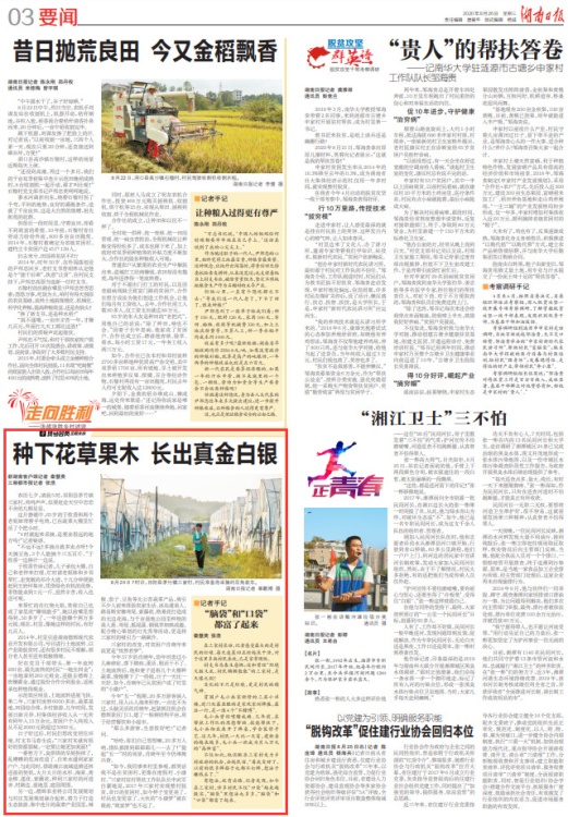 一番努力下,臭烘烘的旱厕拆掉了,乱糟糟的危房改造了,自来水通到家家户户。与此同时,借助湘江流域退耕还林还湿的契机,大片大片的水杉、海棠、黄金柳、莲花、紫薇花,种到三家村的河道旁、村路边、湿地里、庭园周围。