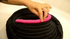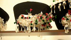 “十八洞的帽子缠法则是前低后翘,旁边还会突出两个边角,看起来非常有层次感,随着时代进步,帽子也做了简化处理,通过缝制边缘和减轻布料重量,让帽子更方便穿戴。”