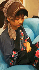 “湘西苗族分布在不同地域有着不同的特色,比如山江镇与十八洞的头饰戴法是完全不一样的。以前山江苗寨当地妇女的帽子是完全用布缠带,出门可能需要两个小时才能穿戴好,后来为了便捷,制作成了简单的帽胚,然后再用布去缠绕,方便了不少。”