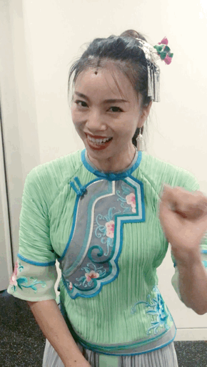 莫娟娟:我参演的这幕叫《幸福山歌》,大概剧情是十八洞村举办了一场相亲大会,从隔壁村请来了一群单身少女相亲,演绎的是苗寨单身青年男女追求幸福新生活的美好愿景,展现老百姓脱贫也脱单的获得感和幸福感。