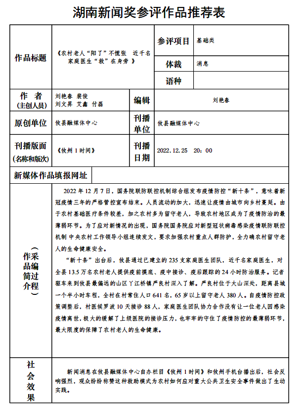 根据《2022年度湖南新闻奖评选办法》有关规定,攸县融媒体中心初选作品1件拟参评2022年度湖南新闻奖。