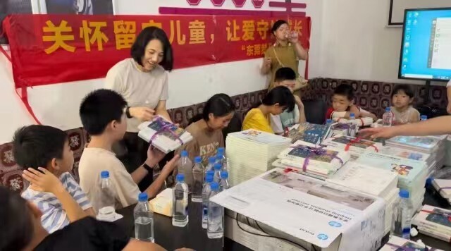 东莞市志愿者在攸县宁家坪镇双凡村为孩子们赠送图书。通讯员李放鸣摄