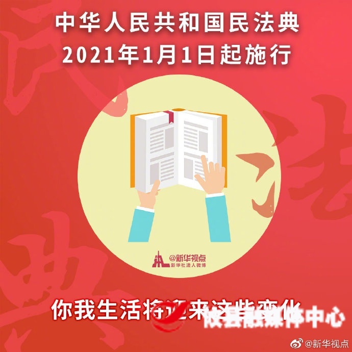 2021年1月1日,民法典将正式施行,现行婚姻法、继承法、民法通则、收养法、担保法、合同法、物权法、侵权责任法、民法总则同时废止。衣食住行的方方面面,这部法典都安排得明明白白。今后你我生活将迎来哪些重要变化?戳大图一起康康吧!