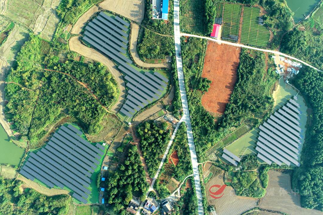 攸县300MW(兆瓦)地面分布式光伏项目一期于今年年初启动建设,项目采取“渔光互补”模式进行开发,形成“上可发电、下可养鱼”的发电新模式。项目建成后,预计每年可以向国家电网输送3亿千瓦时的清洁能源,在壮大村级集体经济、增加农村百姓收入的同时,带动当地绿色低碳发展。