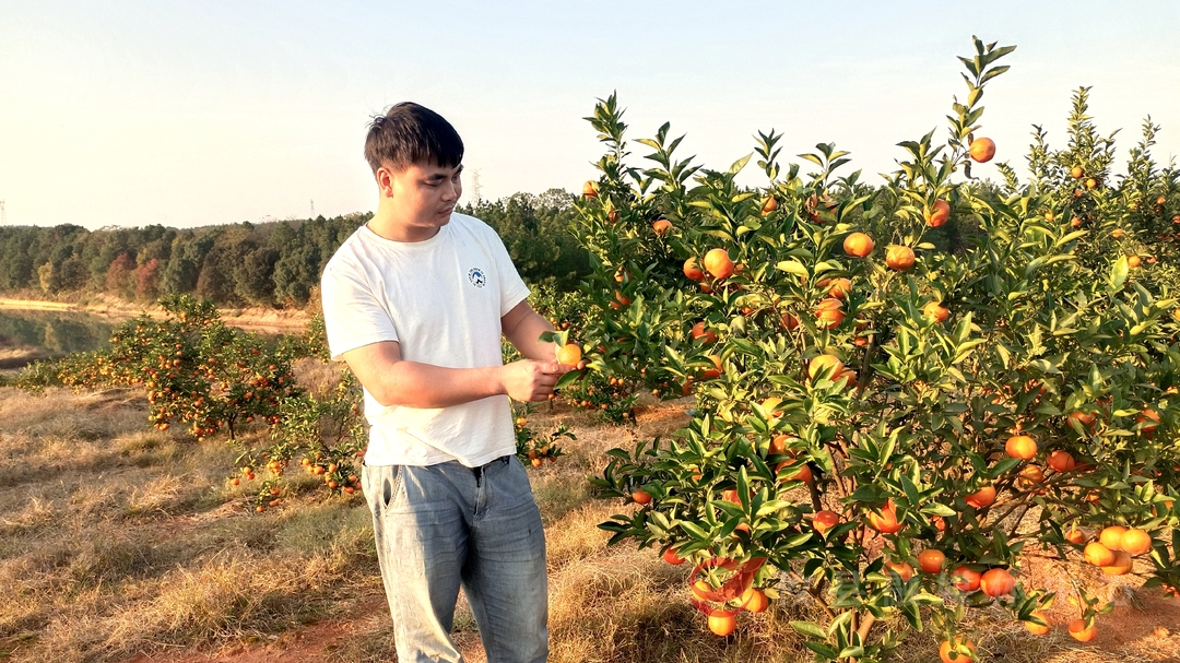 1991年出生的何期敏在广西从事挖掘机工作时,无意间看到了“世纪红”柑橘,他一下子就“爱“上了这种鲜红、漂亮的柑橘品种,当他得知“世纪红”品种适应性强,耐瘠薄,无论山地平原,均适宜种植,便决定回到家乡,动员家人一起承包了二百多亩荒山,种植“世纪红”柑橘