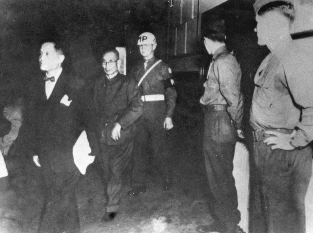 这是当年在南京制造大屠杀的主犯华中派遣军司令松井石根(左二)被处决。新华社发