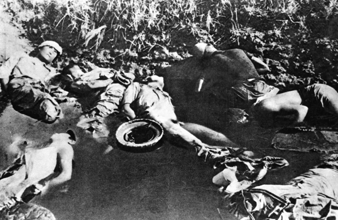 图为在南京大屠杀中,日军把无辜的中国人反绑双臂枪杀后,掷入城郊池塘。新华社发