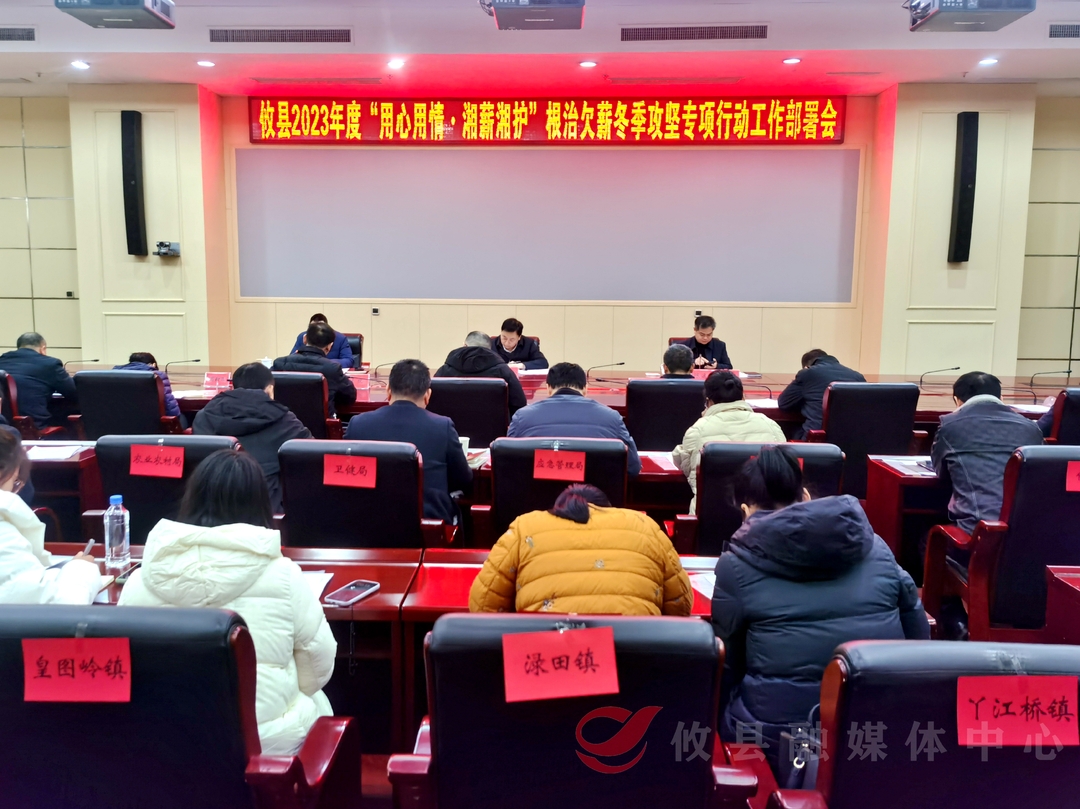 12月26日,我县召开2023年度“用心用情 湘薪湘护”根治欠薪冬季攻坚专项行动工作部署会,听取有关情况汇报,对下步工作进行安排部署。