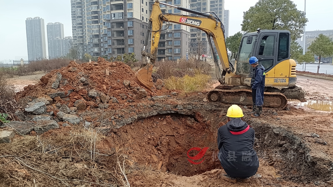 工作人员将情况上报后,公司立即安排人员巡查故障点,发现爆管故障点在聚龙9号小区附近,便马上组织人员、机械进行紧急抢修。