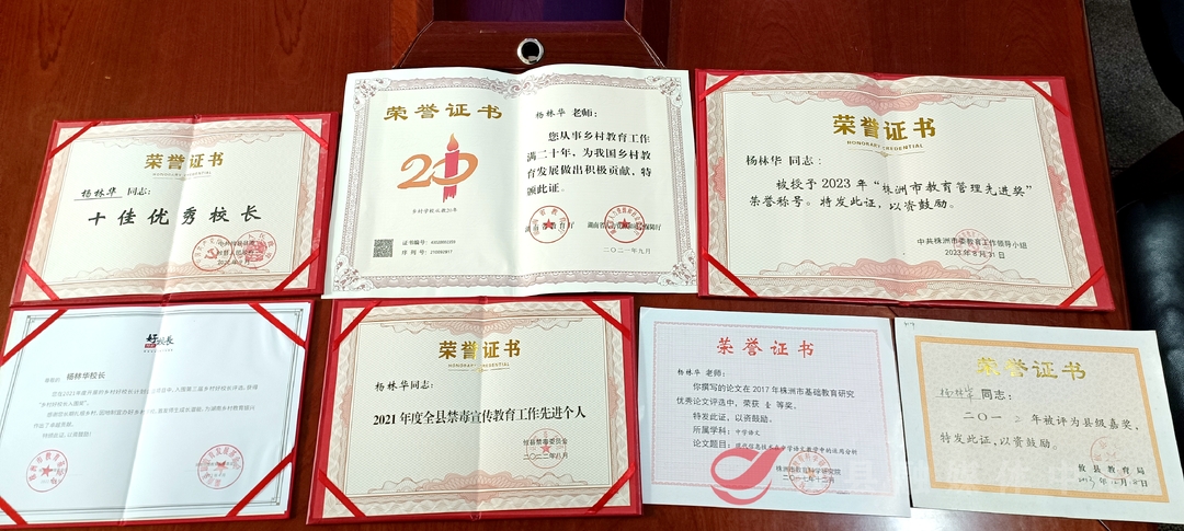 甘洒汗水育桃李,辛勤耕耘满园春。多年来,杨林华一直以高标准要求自己,不断提升自身教学水平和能力,从普通教师到学校管理人员,他先后获评湖南省乡村学校从教20年积极贡献奖、株洲市教育管理先进奖、攸县十佳优秀校长等荣誉称号。2017年,杨林华当选为县人大代表,在做好本职工作的同时,他积极参加各级人大组织的各类培训,不断提升自身履职能力。在当选人大代表的七年时间里,杨林华经常深入网岭镇的各个学校,与老师们进行座谈交流,听取基层教师心声,积极撰写建议和意见,提出了《关于集中办学的建议》《关于代表教师待遇低、加大招聘教师力度的建议》《关于网岭中心小学操场提质改造的建议》《关于对学校周边流动摊贩整治的建议》等数条建议。