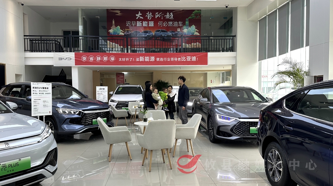 在汽贸城某新能源品牌4S店,市民胡先生正在挑选自己心仪的一款新能源汽车。