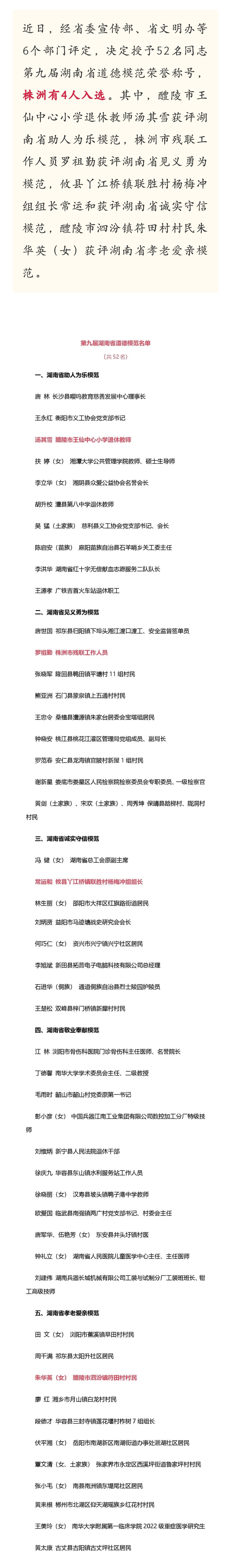 株洲4人获评第九届湖南省道德模范,攸县常运和上榜!