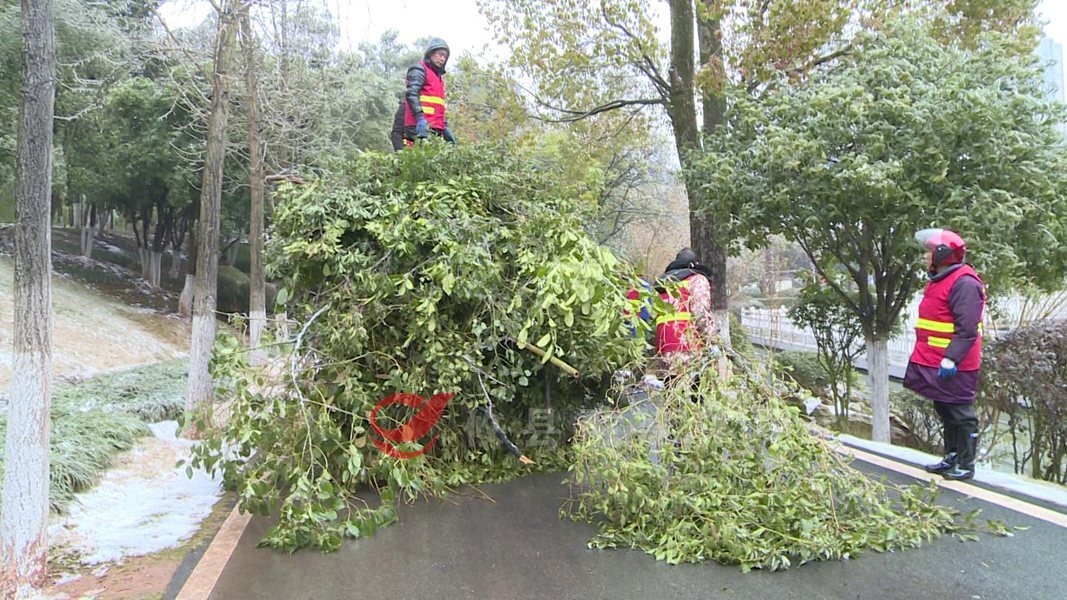 受低温雨雪冰冻天气影响,近期攸县城区部分路段绿化带树木出现断枝、折腰现象,为了确保市民交通出行不受阻碍,攸县市政园林服务中心组织150余人投入到应急抢险工作中。