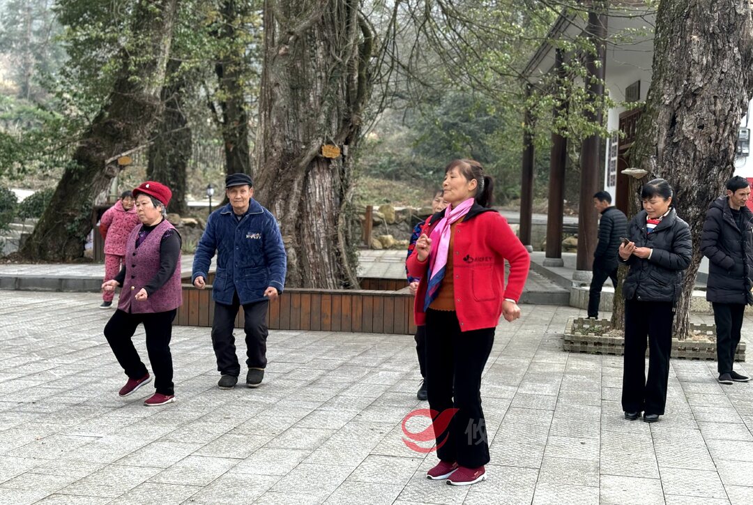 鸾山镇桃源村幸福屋场建设之前,这里因为古树密布,吸引了不少游客休闲拍照。2021年,桃源村依托古树群,在不破坏一根草、一根藤的情况下,把原生的状态保留下来,建设了一个休闲广场。去年,村里继续完善休闲广场基础设施,建成幸福屋场。