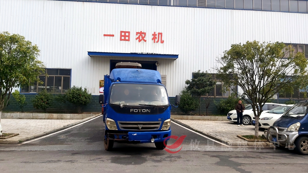 湖南一田农业机械有限公司办公室主任陈晓容:“我身后的这批货即将发往江西,现在我们的师傅正在做最后的调试及检验,确保质量。”