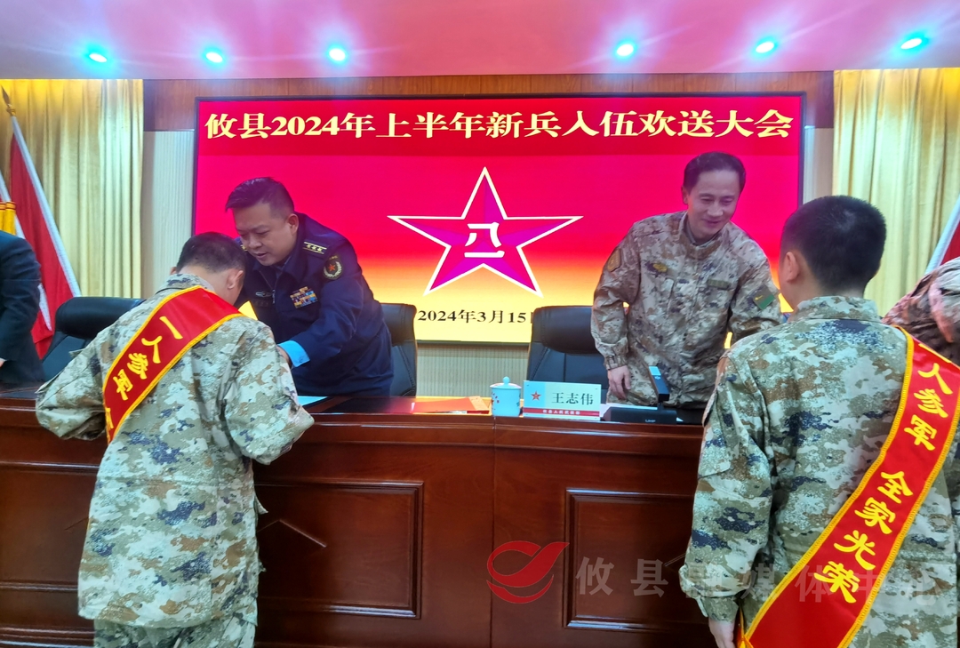 欢送仪式上宣读了应征青年批准入伍命令,参加仪式的县委常委、县人武部政委王志伟和县人武部部长沈松鹏为应征入伍的新兵代表佩戴红花绶带,代表党和政府以及80万攸县人民向满怀报国之志、积极投身“强国强军”伟大梦想的新兵们致以崇高的敬意,向心系国防、胸怀大义、踊跃送子参军的家属表示衷心的感谢。同时望新兵们要胸怀壮志,不负青春,把握住这次人生难得的机遇,尽快实现从青年学生到铁血军人的转变,努力成为“听党指挥、能打胜仗、作风优良”的人民军队中的优秀一员,并牢记使命、扎根军营,练就过硬军事本领,充分展现攸县人民的家国情怀和责任担当,积极在部队建功立业,为自己、为家人、为家乡增光添彩。