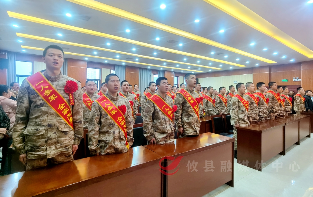 欢送仪式还举行了入伍新兵代表发言和入伍新兵集体宣誓,许多新兵家属也赶到现场参加送行,为新兵们加油鼓劲。