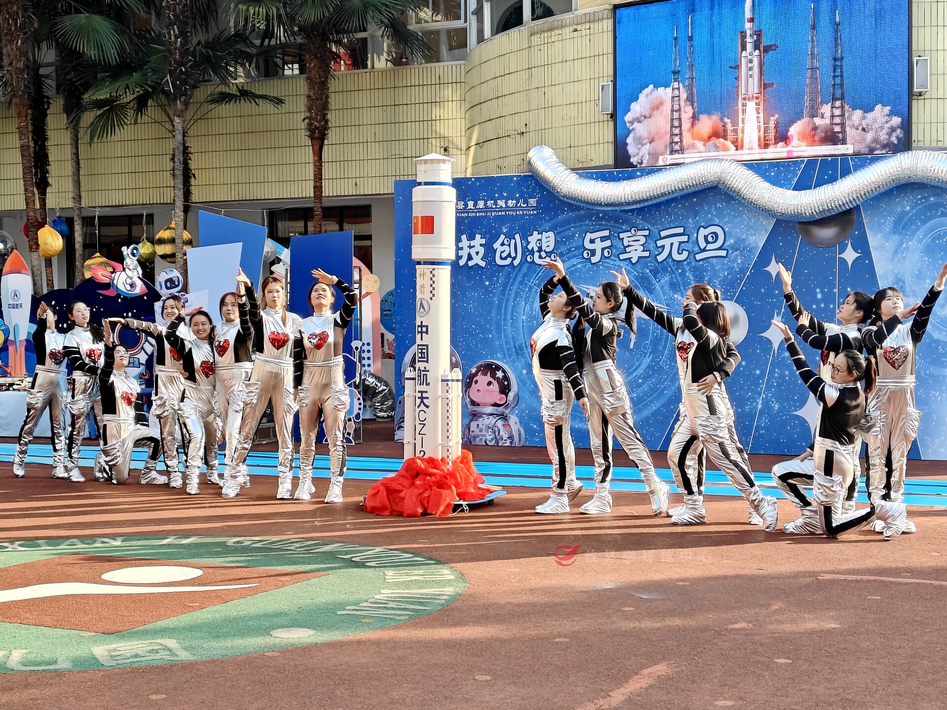 活动在一场充满奇思妙想的《我们的梦》主题表演中欢乐启幕,现场的小观众们目不转睛,时而因火箭“升空”发出齐声惊叹,时而兴奋地拉着身旁小伙伴的袖子,指着舞台低声交流。据了解,本次活动是幼儿园精心策划的“科技月”成果展示与元旦庆典。园方将整个园区打造为一个大型的“未来科技乐园”,共设置了包含“玩转飞机”、“有趣的静电”、“泡泡秀”、“悬浮的乒乓球”在内的九个特色科学游戏区域。孩子们化身“小小科学家”,在家长的陪伴下穿梭于各个点位,通过动手完成挑战、收集印章,在游戏中感受科学的奇妙。