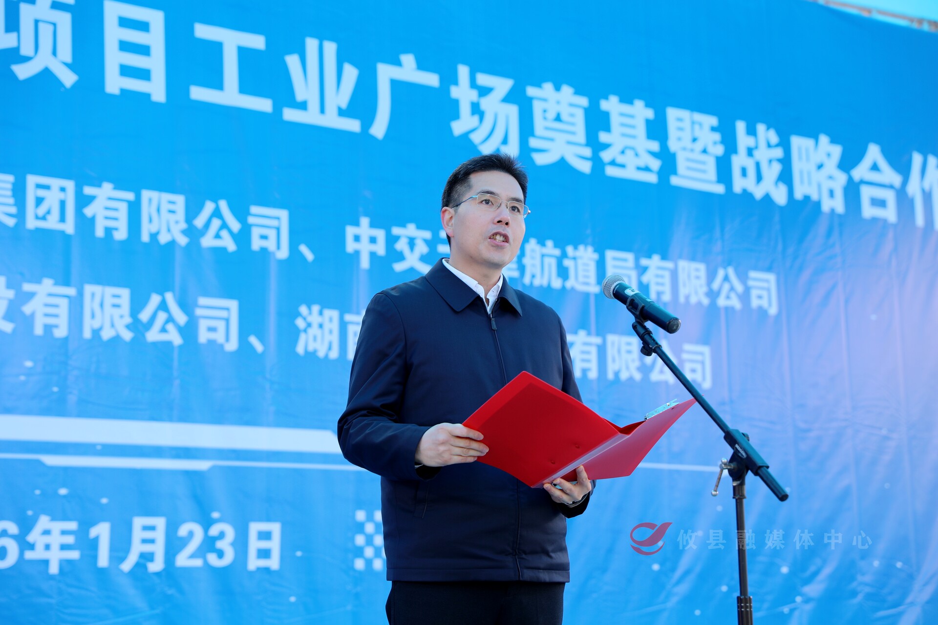1月23日,下湖矿区建筑石料用灰岩矿项目工业广场奠基仪式暨战略合作协议签订活动在网岭镇灯笼桥下湖项目工业广场举行,株洲市人民政府副市长刘飞勇宣布启动奠基仪式,县委副书记、县长武挪强致辞。
