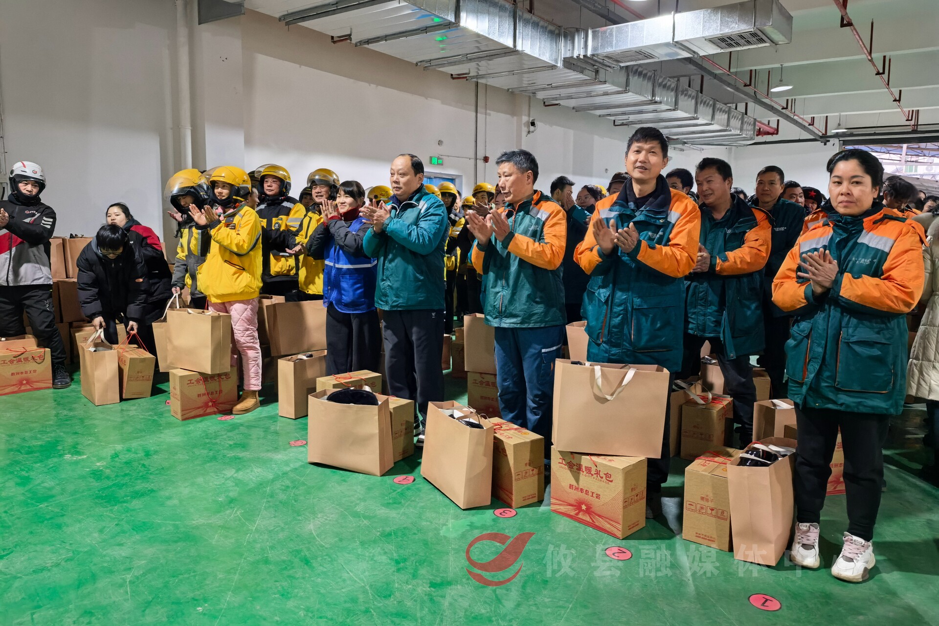 启动仪式现场,参加活动的县领导及县总工会负责人为在场的新就业形态劳动者一一送上包含防寒手套等暖冬物资和工会大礼包,这些礼包都是经过精心挑选的,既贴合户外作业需求、饱含节日祝福,承载着党和政府的关怀,也凝聚着工会组织的贴心服务,让大家在寒冬中感受到实实在在的温暖。