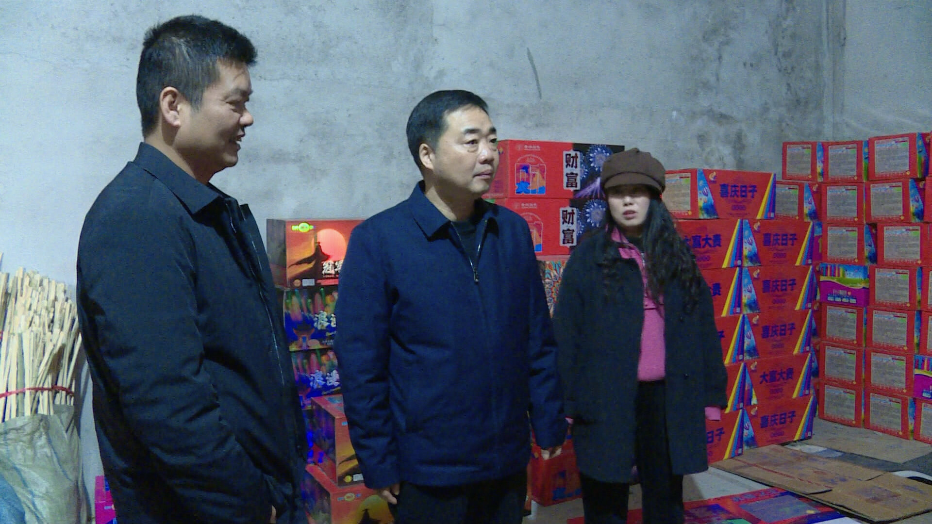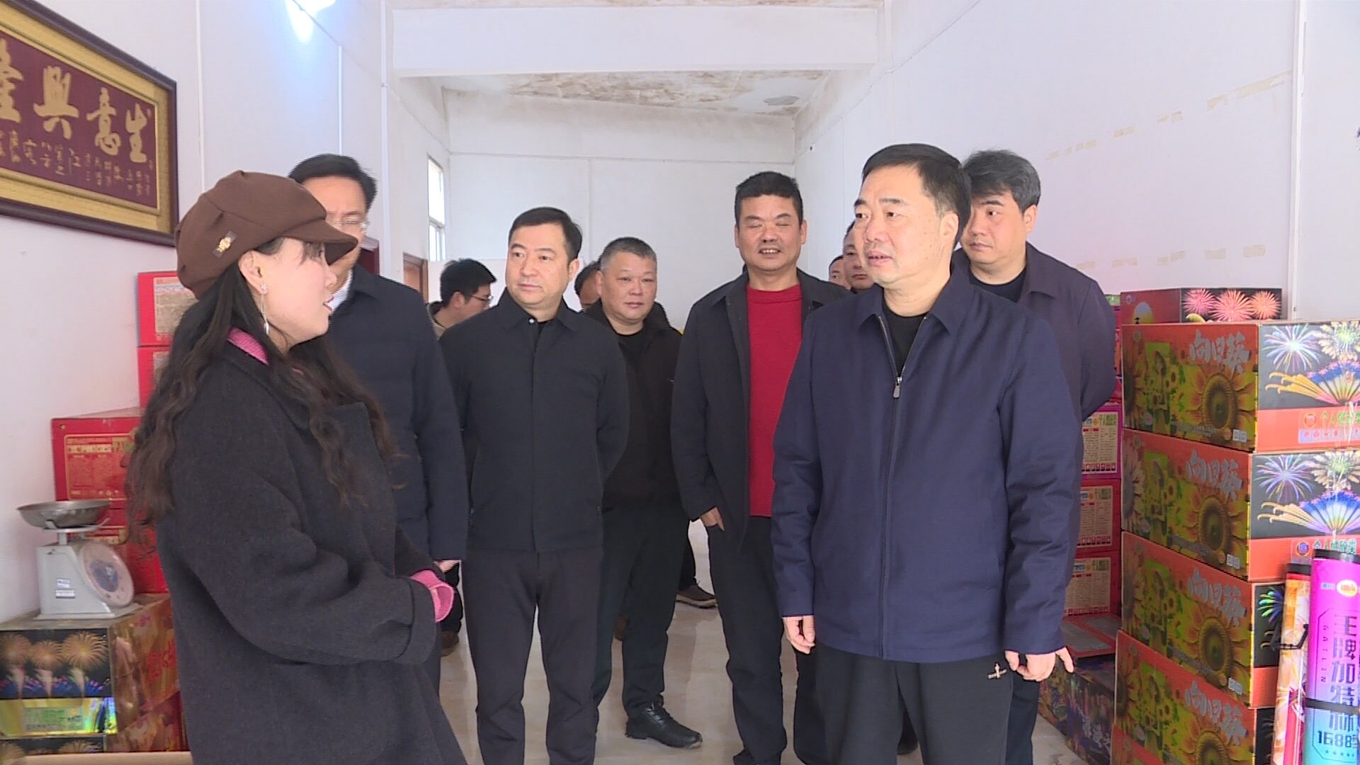 李鹏程首先前往华盛烟花批发公司,走进仓库,实地查看并了解各项安全制度的落实情况。他强调,烟花爆竹经营企业作为安全生产工作的第一责任人,必须严格履行主体责任;要强化隐患自查与应急处置能力,严禁超量存储、违规堆码,确保“人防、物防、技防”措施落实到位,坚决守住烟花爆竹存储安全的底线;要严格执行流向登记制度,从源头上杜绝“三无”及违禁产品流入市场,确保批发环节的绝对安全。