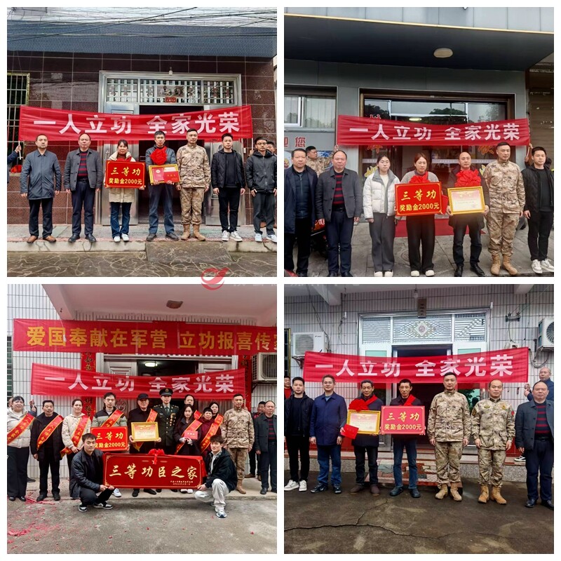 2月27日,由县人武部、县退役军人事务局组成的送立功喜报联合工作组来到6名现役军人家中,为其及家属送上三等功立功喜报,向他们致以崇高敬意和亲切慰问。