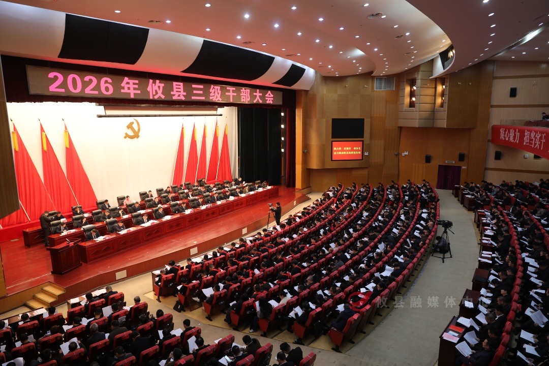 2月28日,2026年攸县三级干部大会在县发展中心会议中心隆重召开。会议动员县、镇、村各个层面的力量,坚持以习近平新时代中国特色社会主义思想为指导,深入开展“创新成果转化年”“项目攻坚增效年”“对外开放突破年”“企业服务优化年”活动,持续打好“三大会战”,实施“一心四区”战略,为加快建设“湘东明珠·幸福攸县”而努力奋斗。县委书记李鹏程作主题工作报告,县委副书记、县长武挪强主持会议。