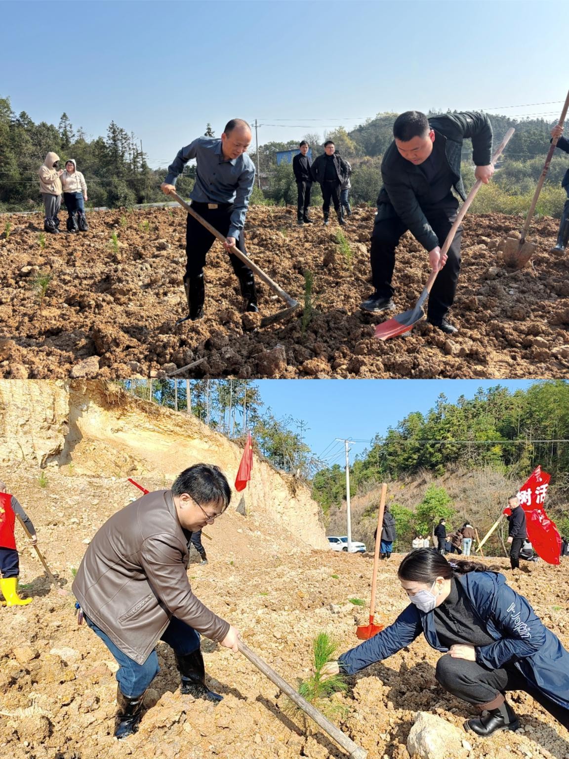 活动现场,镇村干部百余人齐心挥锹铲土、扶苗培土,在大家的齐心协力下,一株株新苗迎风挺立,在阳光下焕发着盎然生机,为初春的大地增添了勃勃生机。此次活动在15亩土地上共种植柏外松树苗2000余株,是桃水镇推进生态文明建设的具体实践,也是一次增强凝聚力、提升参与感的集体行动。通过镇村干部的动员和亲身实践,激发广大干部群众投身乡村建设、守护绿色家园的内生动力,引导大家牢固树立生态环保意识,自觉做生态文明建设的实践者、推动者和守护者。