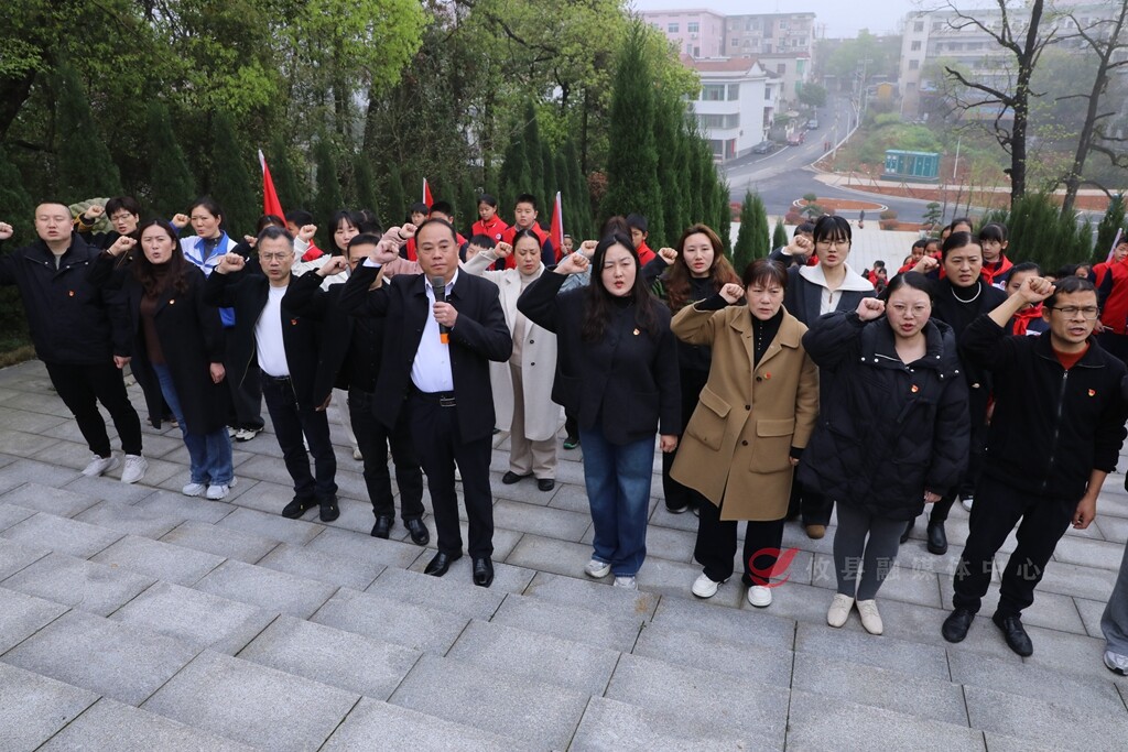 宣誓环节,党员教师重温入党誓词,少先队员高举右拳重温入队誓词,铿锵誓言响彻现场。仪式尾声,全体师生有序绕行纪念碑,敬献小白花瞻仰英名。
