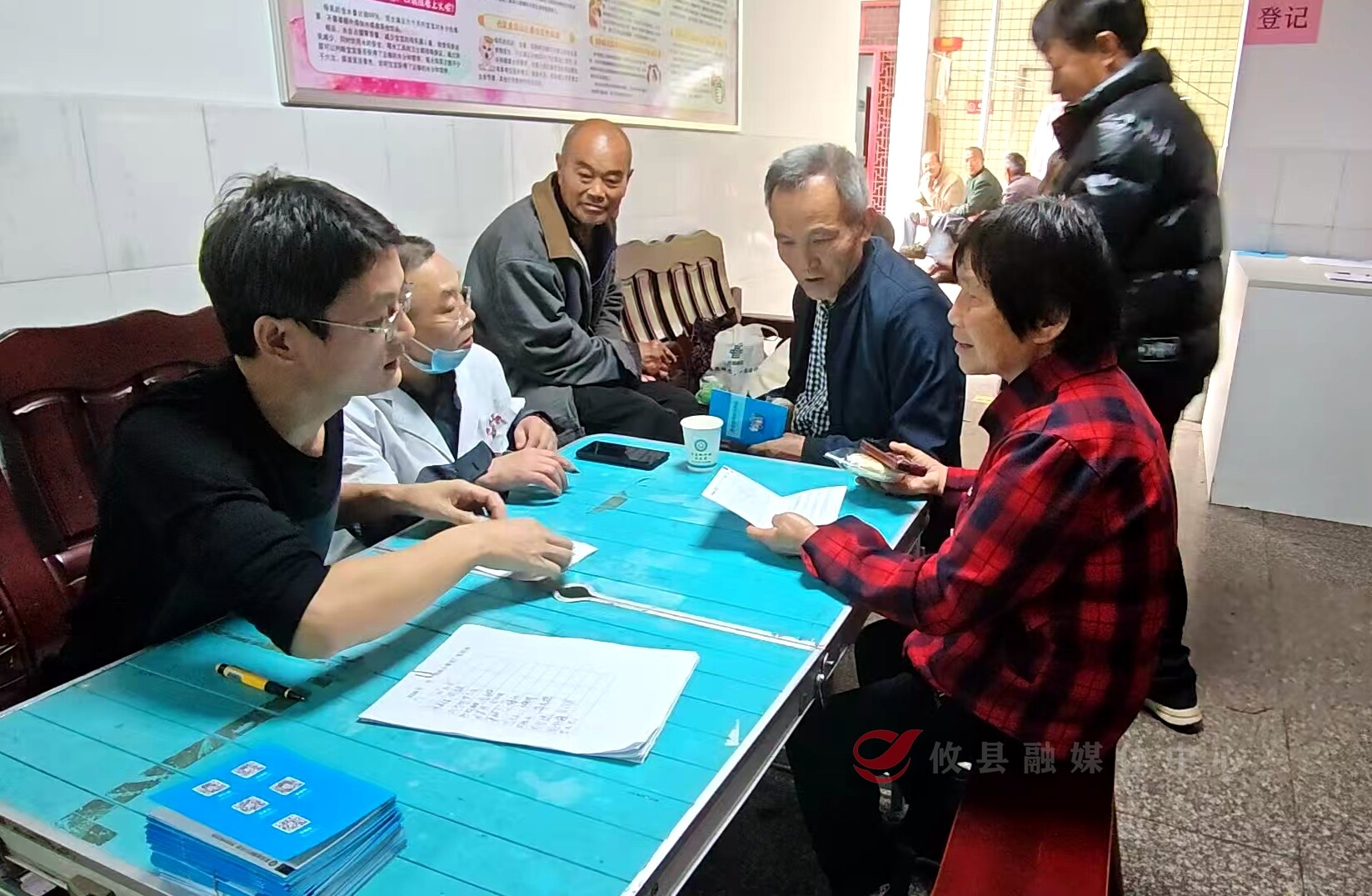 桃水镇卫生院副院长文新跃:“你们过来体检,每一次做体检都有积分哈,每个月的10号、20号下午,抽空来我们这里换东西。”