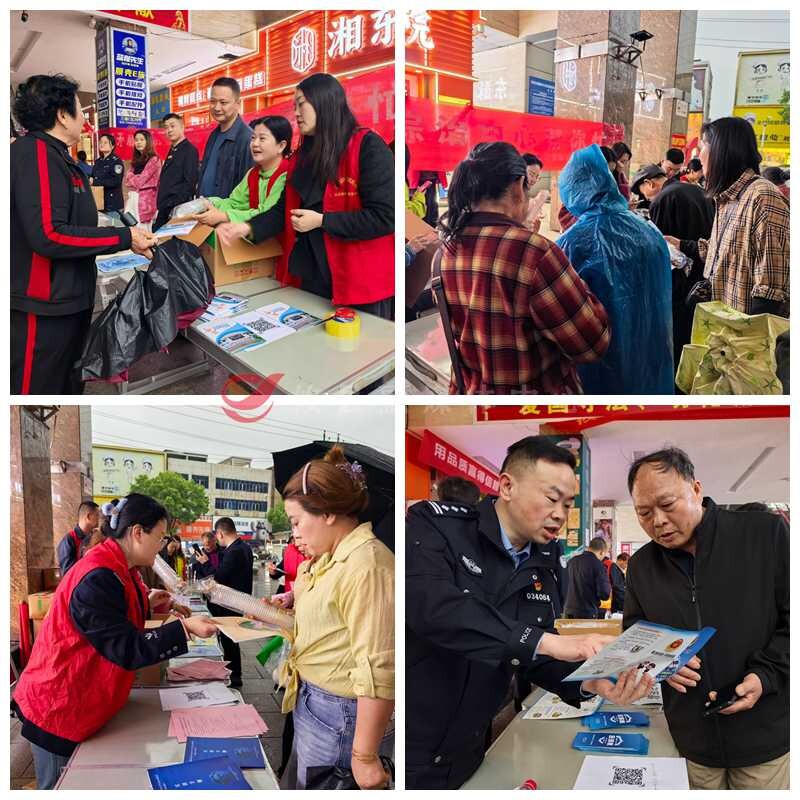 在人流密集的湘东大市场,来自各单位的的十多名工作人员化身“宣讲员”,为来往的市民朋友详细讲解关于网络安全、反诈防骗、消防安全等方面的问题,强调维护国家安全的重要意义,号召大家从身边小事做起,共同守护国家安全。活动现场还设置了“国家安全知多少”有奖问答环节,居民们通过扫描二维码或参与现场答题,就能赢取环保杯等实用小礼品。