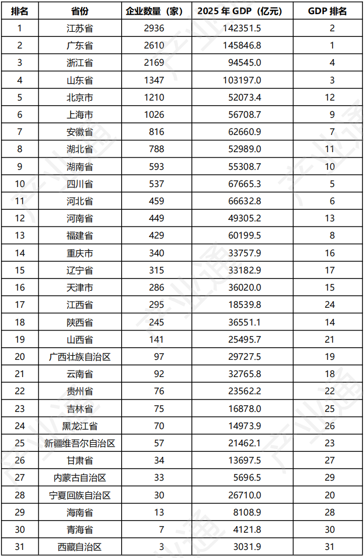 专精特新小巨人企业省份分布及省份GDP排名