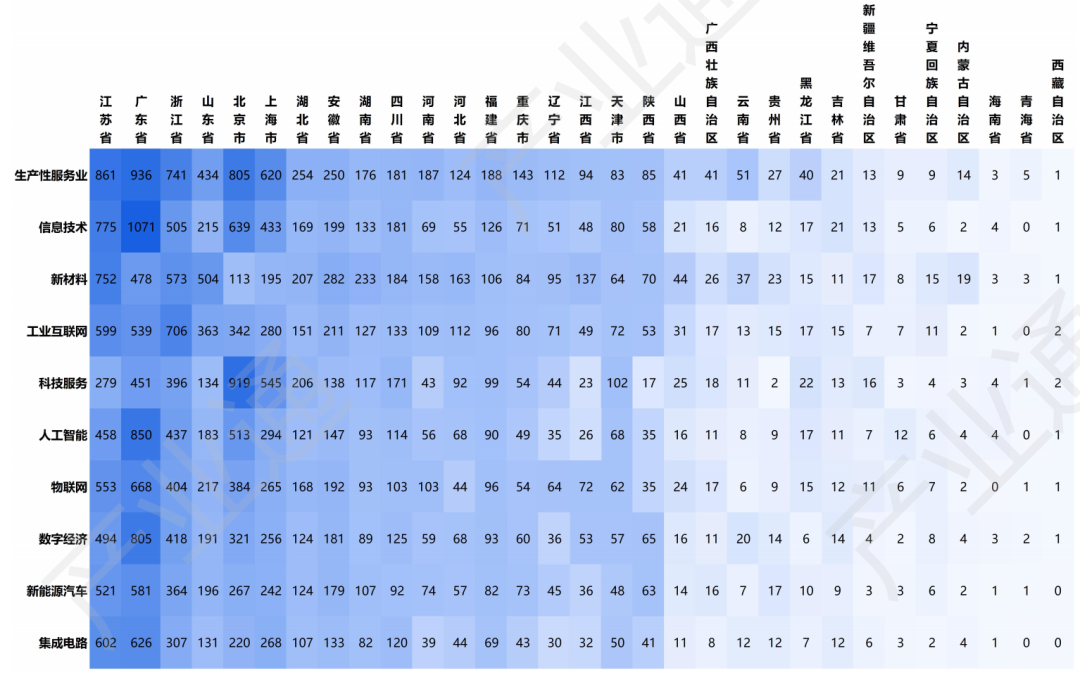产业分布聚焦制造业与高技术服务业。从行业分类看,“小巨人”主要集中在制造业(10320家),以及科学研究和技术服务业(4822家)与信息传输、软件和信息技术服务业(1178家)。从细分赛道观察,生产性服务业、信息技术、新材料是“小巨人”最为密集的三大产业领域,其中广东省在信息技术产业的集聚度全国领先。